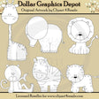 This one-of-a-kind collection is only available at Digital Craft Supplies. This set includes a spotted giraffe, an elephant, a lion, a monkey with a banana, a striped zebra, and a cute little striped tiger. This exclusive set contains 6 digital stamps.