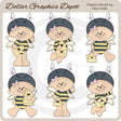 This collection includes adorable bumble bees, in different poses, with little beehives. This set contains 6 graphics.