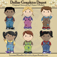 This one-of-a-kind collection is only available at Digital Craft Supplies. This set includes three little boys and three little girls, wearing colorful overalls, with lots of little patches, in blue, brown, pink, purple, red, yellow, and green. This exclusive set contains 6 graphics.