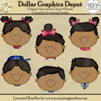 This collection includes three little toddler girl faces, with pretty collars and hair bows in red, pink, blue, and white, and three little toddler boy faces, with handsome blue collars, a necktie, and a hat. This set contains 6 graphics.