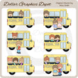 This one-of-a-kind collection is only available at Digital Craft Supplies. This set includes school buses and school children with backpacks. This exclusive set contains 6 graphics.