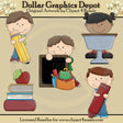 This one-of-a-kind collection is only available at Digital Craft Supplies. This set includes a stack of school books with a red apple on top, a little boy holding a yellow pencil, a little girl sitting at her school desk, a little boy holding a red crayon, and a little boy with a black chalkboard and a backpack filled with school supplies. This exclusive set contains 5 graphics.