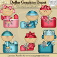 This collection includes three baby girls, wearing pretty winter coats, hats, scarves, hair bows, and ear muffs, three baby boys, wearing pretty winter coats, hats, scarves, and ear muffs, large pots, and lots of little snowflakes. Colors include: pink, red, aqua, beige, and silver. This set contains 6 graphics.