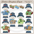 This one-of-a-kind collection is only available at Digital Craft Supplies. This set includes adorable little snowmen, dressed up in winter coats, scarves, hats, ear muffs, and mittens, Christmas cards in red and green envelopes, a "Welcome" sign, a candy cane, a painted birdhouse, a strand of Christmas lights, and one winter mittens border. This exclusive set contains 7 graphics.