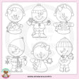 This collection includes six adorable snowmen and snow ladies, with winter coats, boots, hats, scarves, ear muffs, bows, frosty snowflakes, and Valentine hearts. This set contains 6 digital stamps.