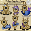 This collection includes six cute little reindeer with winter hats, scarves, and bows, a sleigh, a candy cane, and pretty wrapped Christmas presents. Colors Include: brown, black, purple, blue, red, and white. This set contains 6 graphics.