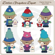 This one-of-a-kind collection is only available at Digital Craft Supplies. This set includes adorable, little winter bears with winter outfits, hats, scarves, mittens, boots, snowflakes, a little sled, and cute little snowmen. This exclusive set contains 6 graphics.