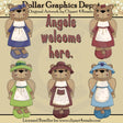 This one-of-a-kind collection is only available at Digital Craft Supplies. This set includes five angel bears, wearing pretty heart dresses, hats, and bows in purple, red, green, blue, and beige, and one "Angels welcome here" word art graphic. This exclusive set contains 6 graphics.