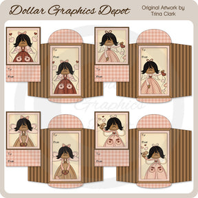 This collection includes four printable Valentine cards and matching envelopes - three have Valentine angels with heartstrings, and one has a Valentine angel, hearts, and a sweet little bird. Each card and envelope has "To:" and "From:" text. BONUS: This collection also includes four 8.5" x 11" printable sheets of each design (not shown in preview). This set contains 12 printables (4 individual cards, 4 individual envelopes, and 4 printable sheets).