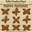 This collection includes nine autumn butterflies, created from beautiful fall colored leaves, in orange, red, brown, and green, and one "Happy Autumn" word art graphic. This set contains 10 graphics.