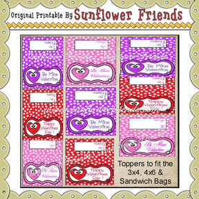 Hearts Valentine Bag Toppers colors in 3 Different Sizes