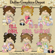 This collection includes six sweet little girls, with pretty dresses and matching hair bows, bars of soap, pretty lotion bottles, pink lipstick, a bottle of perfume, shampoo, nail polish, body wash, a comb, a jar of cream, a painted vase with pretty pink roses, cute little dolls, and two word art graphics - "All Girl" and "It's A Girl Thing." This set contains 8 graphics.