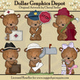 This collection includes six adorable little occupation bears - a nurse with a nurse hat, first aid kit, and stethoscope, a traffic police officer, with a policeman hat and a stop sign, a firefighter, with a fireman hat, red fire hydrant, and fire hose, a business man, with a dress hat and briefcase, a mail carrier, with a mailman hat, a letter, and a mailbox, and a hairdresser, with a pretty hair bow, scissors, a blow dryer, a bottle of shampoo, and a comb. This set contains 6 graphics.