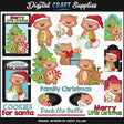 This huge collection includes six adorable little Christmas bears with frosted Christmas cookies, a glass of milk for Santa, a cute snowman, a holly berry branch, a wrapped Christmas present with pretty bow, a little gingerbread man, decorated Christmas trees, a candy cane, and a little reindeer, along with two coordinating greeting cards, three coordinating gift tags, and two coordinating labels. This set contains 18 pieces (11 graphics and 7 printables).
