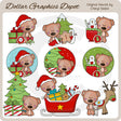 This collection includes adorable Christmas bears with Santa hats, wrapped Christmas presents, frosted Christmas cookies, mistletoe with a pretty bow, a snow capped pine tree, a Christmas stocking, gingerbread men, snowmen, hot cocoa with a candy cane stirrer and mini snowman, a decorated Christmas tree, a sleigh filled with Santa's goodies, a reindeer, a cute little mouse, and three coordinating round graphics (can be used as labels). This set contains 9 graphics.