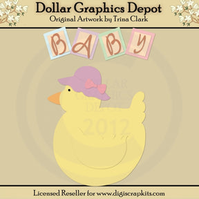 This collection includes cutting files that can be used to create this adorable baby duck craft project (shown “finished” in preview) – a baby duck with pretty hat, and baby blocks with "Baby" word art.