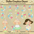 This one-of-a-kind collection is only available at Digital Craft Supplies. This set includes three little birthday girls and ten patchwork numbers in green, blue, pink, yellow, and white. This exclusive set contains 13 graphics.