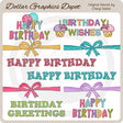 This one-of-a-kind collection is only available at Digital Craft Supplies. This set includes six birthday word art graphics - "Birthday Wishes," "Birthday Greetings," and (4) "Happy Birthday," with pretty polka dots, stripes, and speckles, in pink, aqua, yellow, purple, and green, birthday balloons, pretty cupcakes with flowers and candles, and four matching decorative bows. This exclusive set contains 10 graphics.