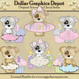 This collection includes six adorable little puppy dogs, pretty hair bows, frosted cupcakes, birthday candles, a birthday sign that reads "Party," and blank birthday signs for you to add your own messages. Patterns include: polka dots, stripes, gingham, stars, and an ornate scroll. Colors include: pink, blue, green, purple, yellow, beige, tan, brown, black, white, and grey. This set contains 6 graphics.