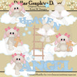 This one-of-a-kind collection is only available at Digital Craft Supplies. This set includes six adorable angel bunnies with golden halos, pretty angel wings, pink bows, puffy clouds, blue stars, pretty crosses, a wooden ladder, and "Heaven" and "Angel" word art. This exclusive set contains 6 graphics.