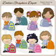 This collection includes adorable little boys and girls with colorful backpacks. This set contains 8 graphics.