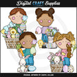 Here are some examples of what you can create using these "Cute Easter Kids 1" graphics:
