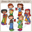 This collection includes six adorable school kids with colorful outfits, school books, pencils, and red apples. This set contains 6 graphics.