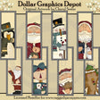 This collection includes eight Christmas bookmarks, with black and white checkered borders, a penguin with a winter scarf and top hat, Santa Claus with a rag doll and candy canes, a snowman with top hat, winter scarf, mittens, a candy cane, and a mail box, Santa Claus with a saltbox house and a snowman, Santa Claus waiving with snowflakes falling, a raggedy Annie holding a snowman, candy cane, and holly berry leaves, Santa Claus holding gingerbread cookies, a candy cane, and gold stars, and decorated Christmas tree and gingerbread cookies. This set contains 8 bookmarks.