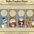 This collection includes four Christmas door hangers, two with green stripes, and two blue with white snowflakes, a snowman with top hat, winter scarf, mittens, candy canes, a mail box, and a red bird, Santa Claus with gingerbread men, a candy cane, and gold stars, Santa Claus with a salt box house, American flag, and cute little snowman, and decorated Christmas cookies in the shapes of Christmas trees, gingerbread men, and traditional cookies, and a candy cane. This set contains 4 door hangers.