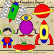 This collection includes colorful spaceships, aliens, a space station, a planet, and a spaceman. This set contains 6 graphics.