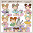 This collection includes six adorable little girls with ruffled dresses, pretty hair bows, pitchers filled with flowers, a painted sugar bowl with tea spoon, frosted cupcakes with little roses, a Mason jar, a croissant, a painted pitcher, a watering can filled with pretty flowers, a painted tea cup, lots of colorful flowers, and one coordinating tea and flowers border. This set contains 7 graphics.