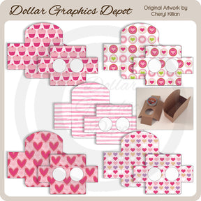 This collection includes everything you need to create adorable Valentine's Day coffee pod holders: five box sides - one with frosted cupcakes, one with watercolor stripes, and three with different patterned hearts (print each one twice), and five coordinating coffee pod inserts (holds two individual coffee pods). PLEASE NOTE: This set coordinates with the "Super Valentine Bag Topper Set," "Scalloped Valentine Tags," "Valentine Mini Candy Bar Wrappers" "Valentine Gift Tags," and "Super Valentine Bookmark Set" collections. These coffee pod holders fit K-Cup™ pods. This set contains 10 printables.