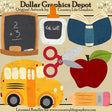This collection includes a chalkboard with eraser and chalk, a bottle of glue, a school book, a pair of scissors, a red apple, a pencil, and a school bus. This collection coordinates with the "School Time - Scrap Papers" and "School Time - Alphas" collections. This set contains 7 graphics.