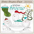 This collection includes adorable winter snowmen, a Christmas stocking with a little snowman peeking out, a leaning Christmas tree, a shining stars, and "Snow Breeze" word art. This set contains 7 graphics.