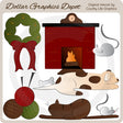 This collection includes a fireplace with a burning fire, hearth mat, and a mantle clock, a little mouse, a Christmas wreath with a pretty red bow, colorful balls of yarn and knitting needles, a spotted dog with a dog bone, and a striped cat with a little mouse. This set contains 6 graphics.