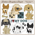 This large collection includes six adorable puppy dogs, two dog bones, doggy paw prints, two coordinating backgrounds, and one "I Love My Dog" word art graphic. This set contains 12 graphics.