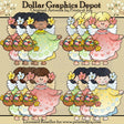 This large collection includes twelve pretty Easter angels, wearing beautiful yellow, pink, and green heart patterned dresses, and pretty floral hair clips, each holding a basket of painted Easter eggs. This set contains 12 graphics.