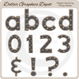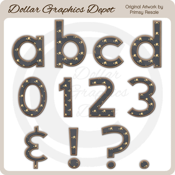 This collection includes navy stars alphabet letters A-Z (all lower case), numbers 0-10, and symbols &, !, ?, and . (not all letters and numbers are shown). This set contains 41 graphics.