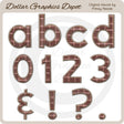 This collection includes red and pink plaid alphabet letters A-Z (all lower case), numbers 0-10, and symbols &, !, ?, and . (not all letters and numbers are shown). This set contains 41 graphics.