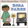 This collection includes Rosa Parks, with a pretty coat, hat, and purse, a bus stop sign, a bus, and one "Rosa Parks" word art graphic. This set contains 4 graphics.