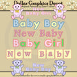 This collection includes six pretty, baby word art graphics - one pink teddy bears and "New Baby Girl" word art, one with blue and yellow gingham and polka dot patterns and "Baby Boy" word art, one pink and lavender with pretty flowers and "New Baby" word art, one with green and pink gingham and polka dot patterns and "Baby Girl" word art, one with yellow baby blocks, pink and lavender flowers, and "New Baby" word art, and one periwinkle teddy bears and "New Baby Boy" word art. This set contains 6 graphics.