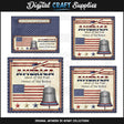 This one-of-a-kind collection is only available at Digital Craft Supplies. This collection includes one standard glass block printable (fits an 8" x 8" glass block), one mini glass block printable (fits a 6" x 6" mini glass block), one ceramic tile printable (fits a 4" x 4" ceramic tile), and one ceramic tile bag topper (great for displaying the decorated 4" x 4" ceramic tile at craft fairs, craft shows and gift shops). The design includes red, white, and blue stars, a quilted American flag, The Liberty Bell, a patriotic ribbon, and "America - Land Of The Free Home Of The Brave" word art. This exclusive set contains 4 individual printables and 4 "Ready To Print" pages (not shown in preview).