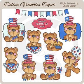 Here are some examples of what you can create using these "Fourth of July Bears 1" graphics:
