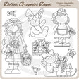 This collection includes a garden girl with a pretty outfit, floral hat, gardening gloves, a basket of flowers, and fresh cut flowers, a garden girl with a pretty apron dress, hair bow, and fresh cut flowers, a garden girl with a pretty dress, hair bow, and a watering can filled with fresh flowers, a cute little fluffy bunny with a pretty bow, a basket of fresh cut flowers and branches, two pretty individual flowers, and a cute little bumble bee. This set contains 8 digital stamps.