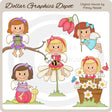 This collection includes pretty garden angels, patches of grass, clay flower pots, pretty flowers, butterflies, a snail, a bumble bee, a tree branch, and a little frog. This set contains 5 graphics.