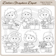 This collection includes adorable little garden girls with pretty flowers in flower pots, a bag of potting mix, a watering can, seed packets, a bag of fertilizer, a hand shovel, and a a carrot garden. This set contains 6 digital stamps.