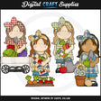 This collection includes four cute little country girls - one with a hand rake and a wagon filled with veggies - lettuce, a red pepper, a potato, a cucumber, and an eggplant, one with a radish seed packet, a radish, and carrots and radishes growing in the garden, one with a carrot seed packet, a carrot, a chili pepper, a tomato, and a watering can, and one with a green pepper, an onion, a shovel, and a clay pot filled with pretty flowers. This set contains 4 graphics.