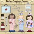 This collection includes three pretty nurses, wearing nurse scrubs and hats, cute little teddy bears, little red hearts, a pretty doll, a prescription bottle, a liquid medicine bottle, a shot, a jar of cotton, a stethoscope, and a first aid kit. This set contains 9 graphics.