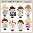 This collection includes eight little angels with golden halos, pretty angel wings, and colorful dresses, a box of tissues, an x-ray, a patient chart, a first aid kit, a prescription bottle, a needle, a thermometer, and a bottle of cough syrup. This set contains 8 graphics.