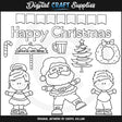 This collection includes Santa Claus, a little girl, a little boy, a "Pictures With Santa" sign, a candy cane, a striped mug, a decorated Christmas tree, a holly berry wreath, one "Happy Christmas" word art graphic, and a blank banner, for you to customize with your own "Christmas" text or other holiday decor. This set contains 10 digital stamps.